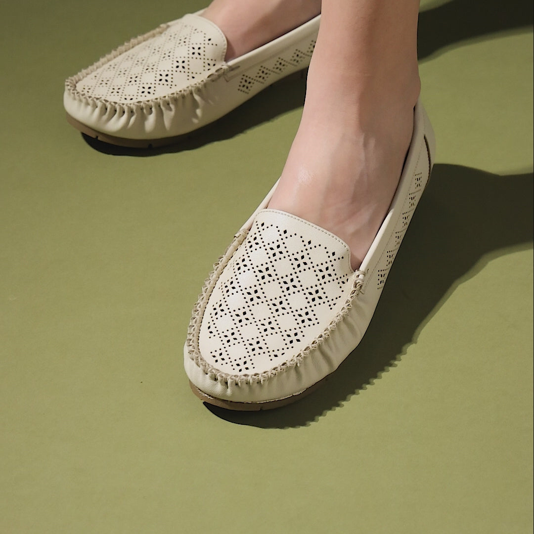 Elevate your workwear with these sophisticated cream loafers! Perfect for everyday office wear, these slip-on shoes feature an elegant cut-work pattern and a comfortable round toe. The flat sole ensures all-day comfort, while the synthetic material offers durability and easy maintenance. The moc toe design adds a touch of classic style to your professional look. Step into these versatile loafers and conquer your workday with confidence and grace!