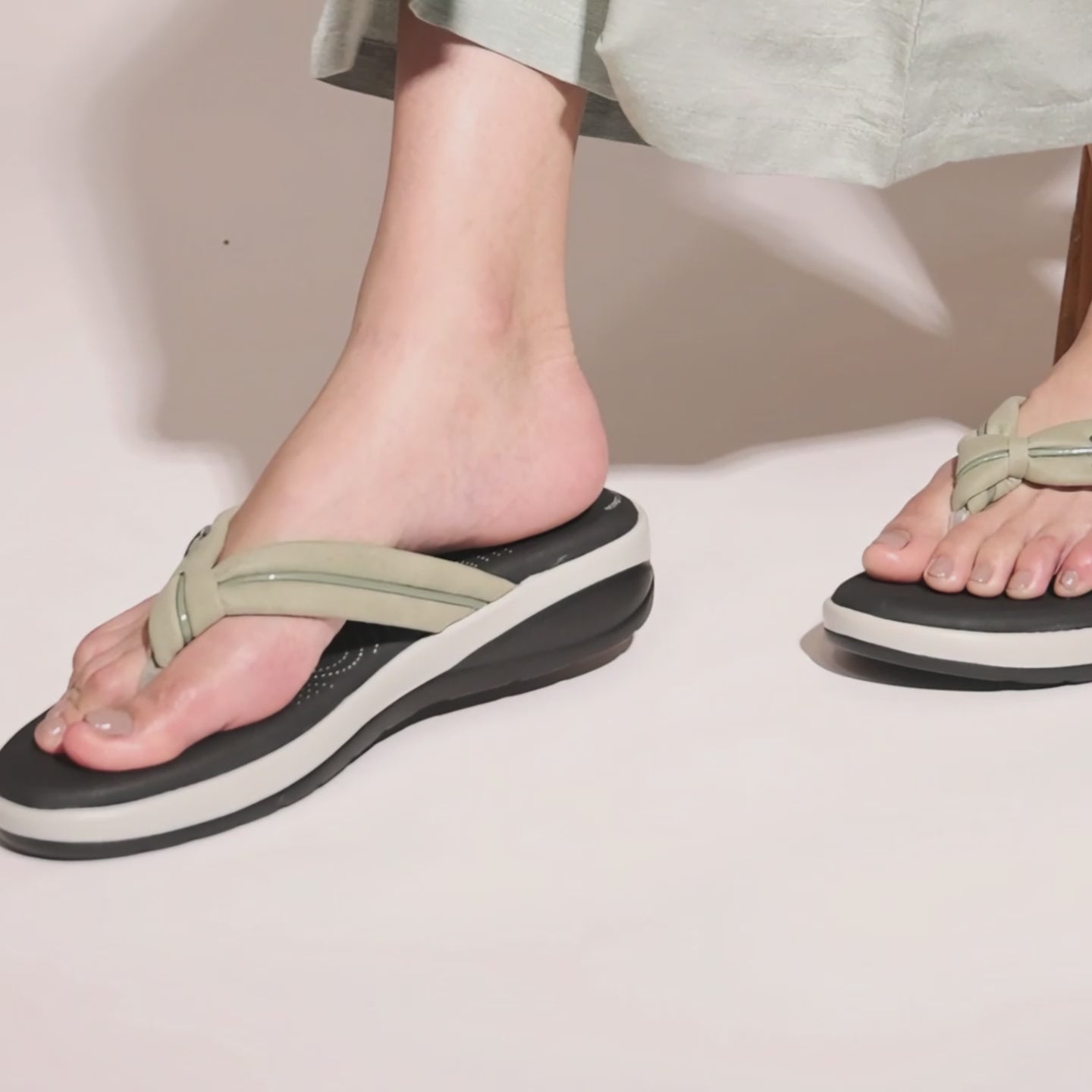 Crafted with a soft suede-finish upper in a calming olive-sage tone, these wedges feature a knot accent strap that adds a touch of casual sophistication. The lightweight, anti-slip sole ensures superior grip and stability, making them perfect for long hours of wear — from leisurely walks to relaxed outings. A stylish fusion of comfort engineering and everyday versatility.